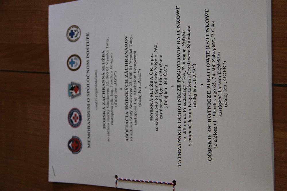 Okrem troch spomenutých aktérov memorandum podpísali za slovenskú stranu Michal Remper, predseda Asociácie horských záchranárov a Ján Luszczewski z poľského GOPRu.