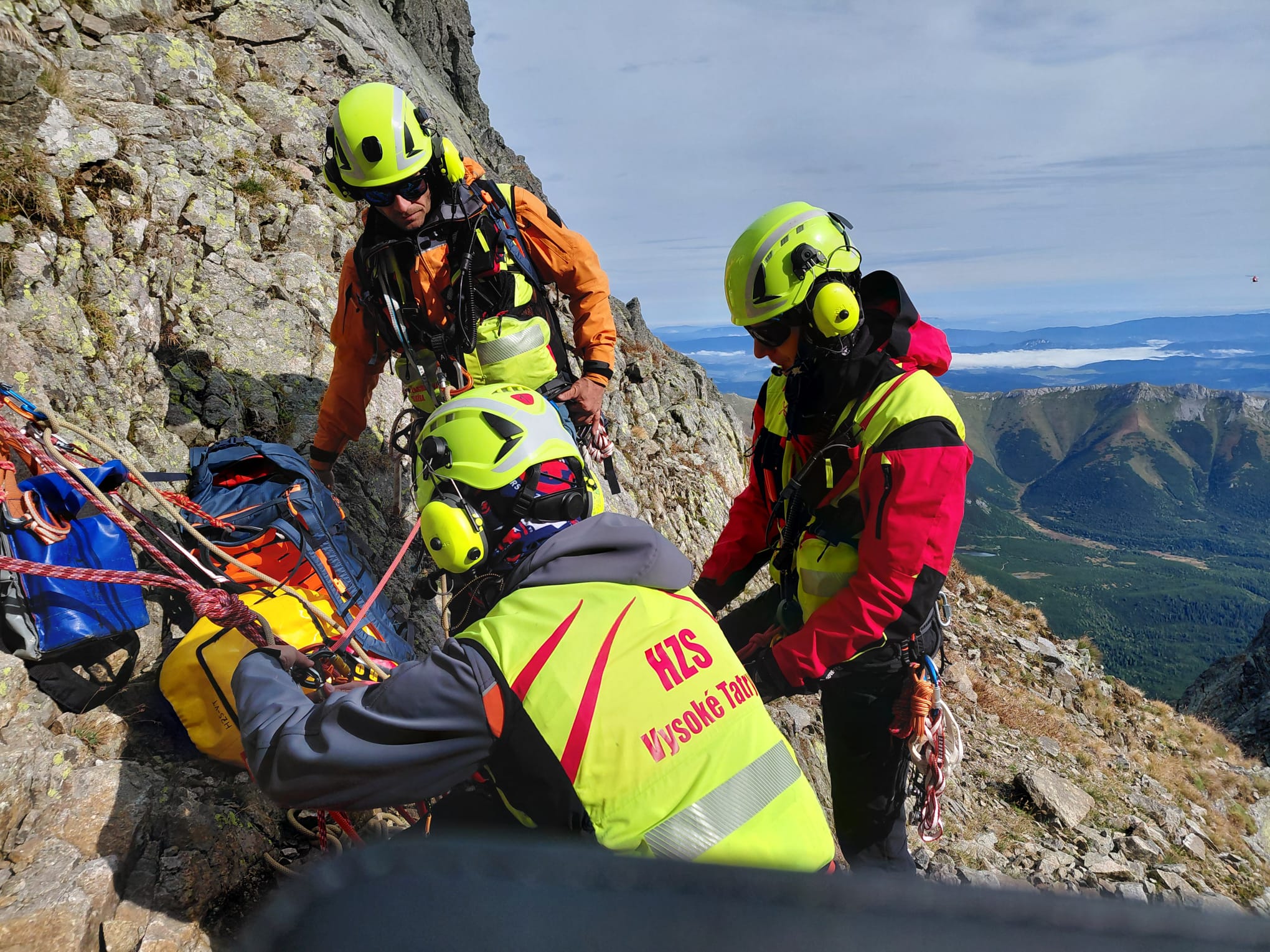 Dňa 12.09.2025 v popoludňajších hodinách prijalo Operačné stredisko tiesňového volania HZS žiadosť o pomoc pre dvoch mužov slovenskej národnosti vo veku 21 a 41 rokov, ktorí uviazli v oblasti Bachledovej štrbiny. V hmle a silnom daždi stratili orientáciu a horolezeckým terénom nedokázali ďalej samostatne pokračovať. Na miesto smerovali pozemne cez Lomnický štít záchranári z Oblastného strediska HZS Vysoké Tatry. Počas prebiehajúcej záchrannej akcie bola HZS uviaznutou dvojicou opäť požiadaná o pomoc, tentokrát však pre 32-ročnú ženu. Slováci boli svedkami približne 100-metrového pádu poľskej horolezkyne, s ktorou následne nebol žiaden kontakt. Vzhľadom na nepriaznivé poveternostné podmienky nemohla byť nasadená letecká technika. Záchranári HZS zo Starého Smokovca uviaznutú dvojicu po príchode zateplili. Pomocou lanovej techniky vyprostili z exponovaného terénu 48-ročného spolulezca poľskej horolezkyne, ktorý po jej výpadku nebol schopný ďalej samostne pokračovať. Následne s trojicou pomocou istenia na krátkom lane prešli po tme exponovaným hrebeňom na Lomnický štít, kde prenocovali. Lokalitu pádu v Medenej kotline medzitým dronom s termovíziou prehľadával príslušník HZS. Pátranie nebolo úspešné a v nočných hodinách bolo prerušené.